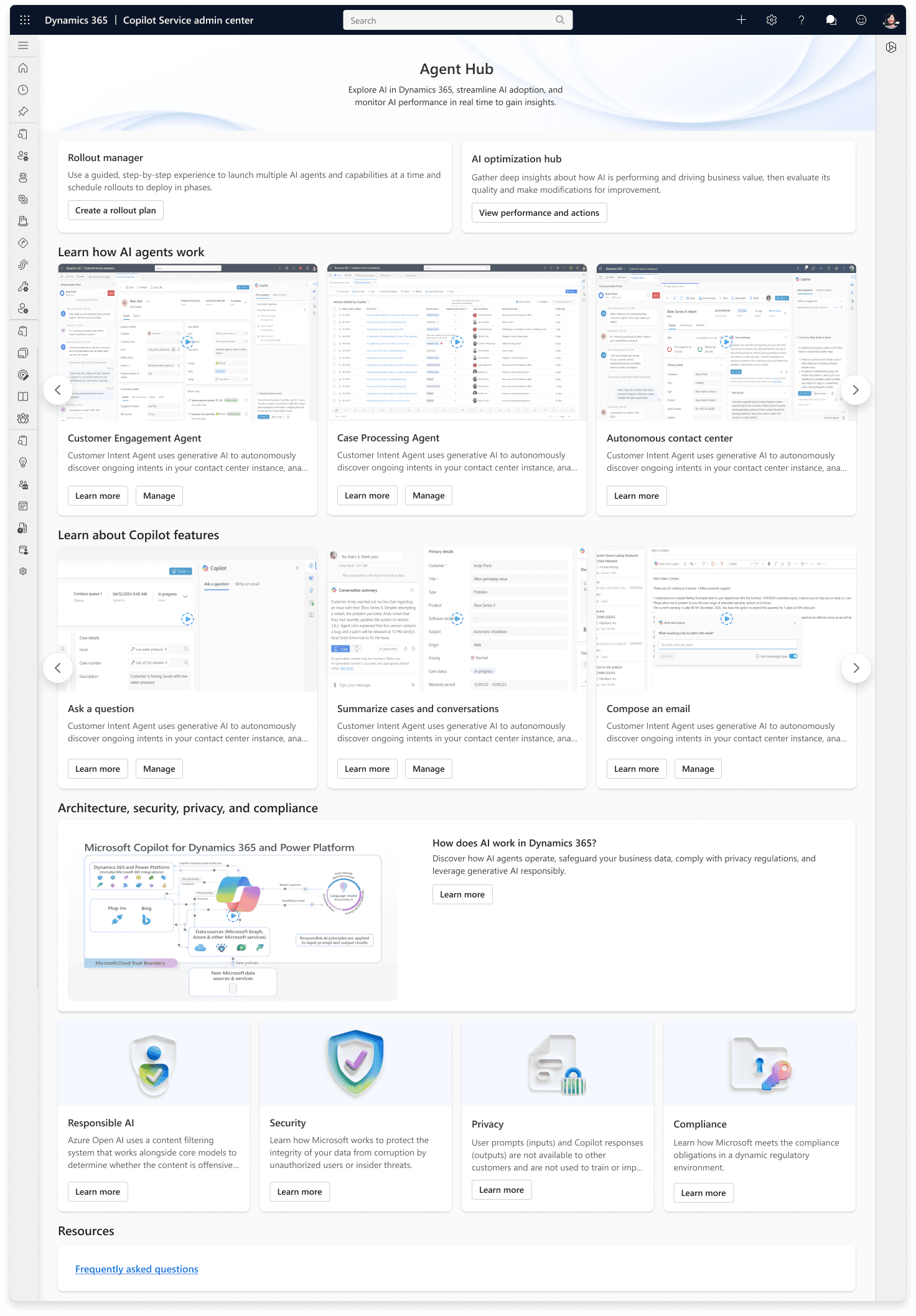 As Microsoft moved toward a fully autonomous contact center vision, customers needed a better way to understand and scale AI features like Copilot and Autonomous Agents. Agent Hub was created as a centralized experience to guide enterprise admins through the journey of learning, adopting, and measuring AI with confidence.